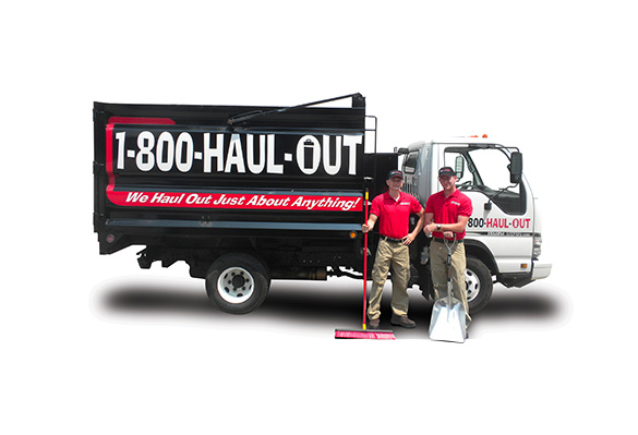 1-800-HAUL-OUT determines our prices based on the WEIGHT and VOLUME of the materials that is loaded into our 16 cubic yard dump truck. Upon physically seeing the items, our team of professionals will determine the volume by approximating how much space the items will take up in our truck. The weight of the items will also affect the price (a full truck of gravel will cost more than a full truck of cardboard). We ALWAYS confirm a price with you before we begin work, and NEVER consider a job complete until you are 100% satisfied with our completed work.